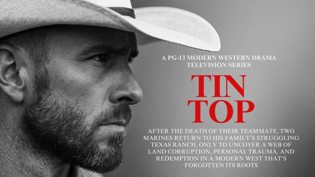 TIN TOP is a PG-13 modern western drama television series, following two US Marines as they deal with the loss of one of their teammates and after returning home to find corruption taking hold and driving their family out of ranching all together